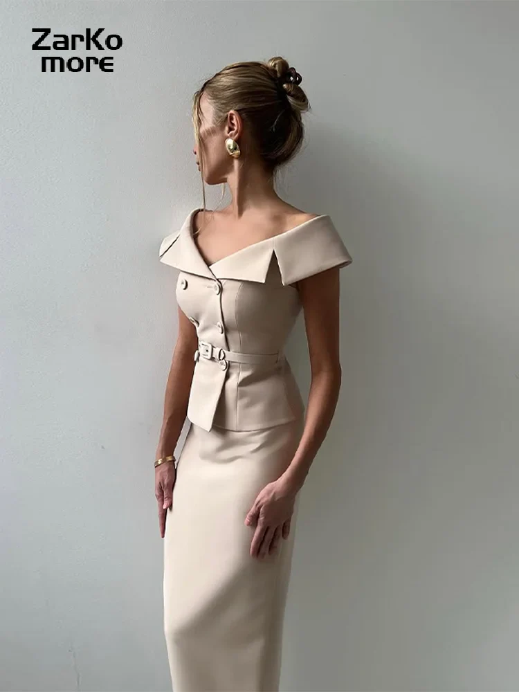 Command the room in this elegant double-breasted midi skirt suit. The tailored blazer features a flattering slim fit and classic double-breasted design while the belted midi skirt creates a polished, feminine silhouette. Perfect for the office, interviews, or special events—this sophisticated two-piece set delivers professional style with modern flair.