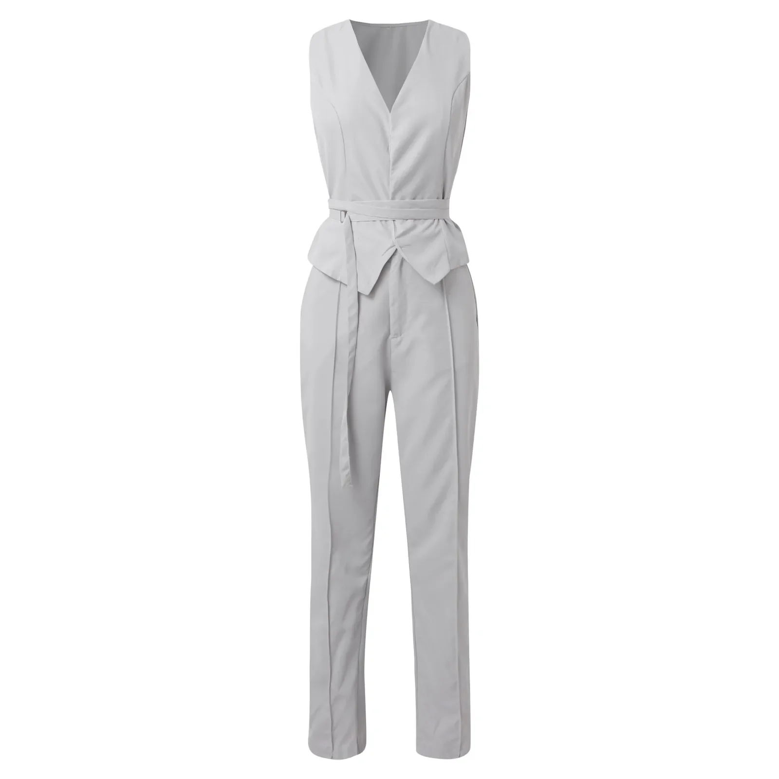 Make a sophisticated statement with this elegant two-piece pantsuit set. The V-neck top creates a flattering neckline while the tailored trousers provide a sleek, polished silhouette. Crafted from high-quality, breathable fabric, this versatile set keeps you comfortable during warm summer days while maintaining a professional, put-together look. The solid color design offers timeless versatility, pairing beautifully with accessories and shoes in any color. Perfect for work, business meetings, summer events, or dressy occasions—this pantsuit transitions effortlessly from office to evening. The V-collar top can be worn alone or layered with camisoles, while the trousers feature a flattering fit that enhances your natural shape. The breathable fabric ensures all-day comfort without sacrificing style. Pair with heels for professional polish or flats for casual elegance. This complete two-piece set eliminates the guesswork from getting dressed.